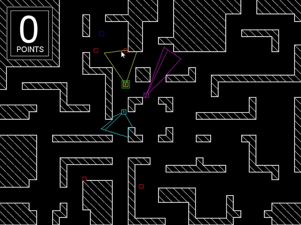 [name] is a tactical top-down shooter arcade game where you play as a squad of color-coded characters. You can only control one squadmate at a time, but you can activate alert mode to cover your flanks as you move from objective to objective. Alert mode will attempt to shoot any enemy that enters the cone drawn from the character.